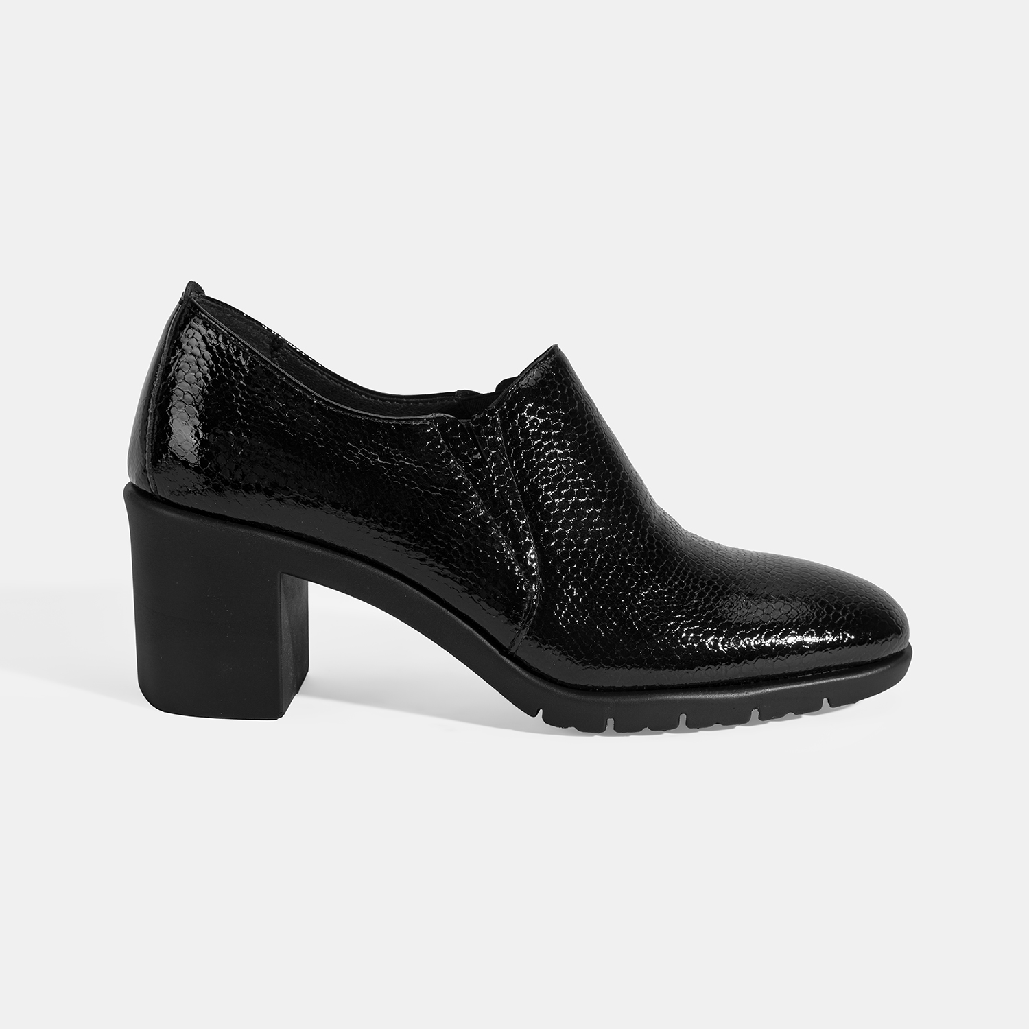 Kadın Siyah Kroko Baskılı DesaComfort Topuklu Deri Ayakkabı