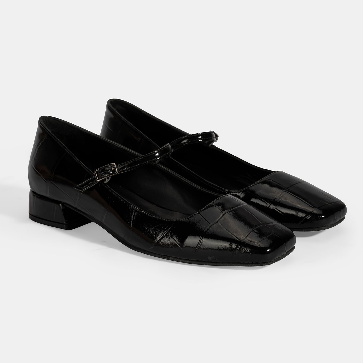 Kadın Siyah Kroko Baskılı Mary Jane Günlük Ayakkabı