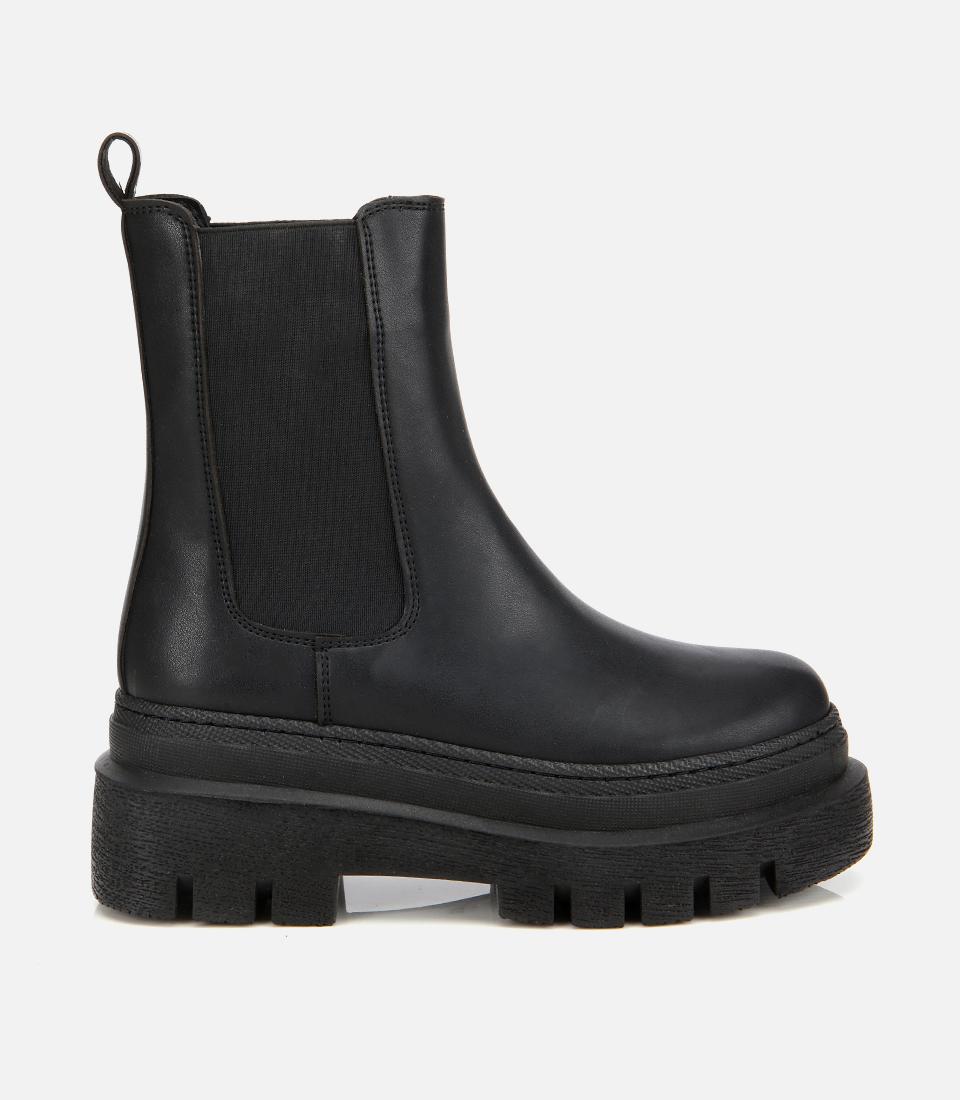 Kadın Siyah Lastik Detaylı Kalın Tabanlı Düz Bot