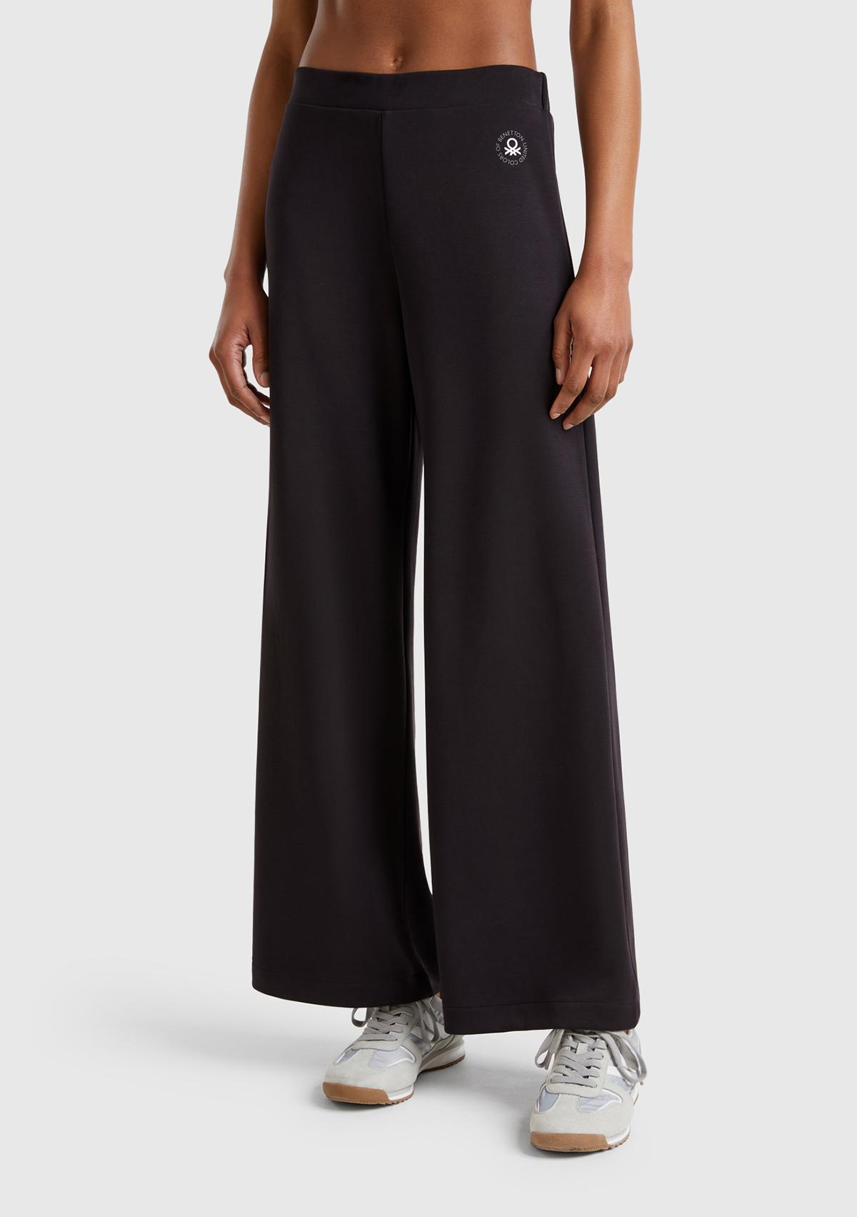 Kadın Siyah Logo Baskılı Beli Lastikli Bol Kesim Eşofman Altı