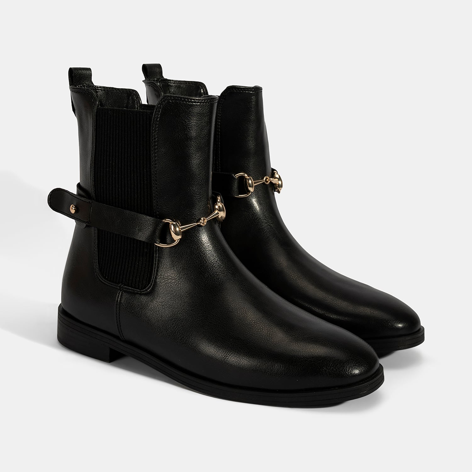 PU materyalden üretilmiş, sıcak tekstil astarlı, tekstil iç tabanlı, termo tabanlı, metal aksesuar detaylı ve lastikli kadın bot. Topuk yüksekliği: 3 cm-PU materyalden üretilmiş, sıcak tekstil astarlı, tekstil iç tabanlı, termo tabanlı, metal aksesuar detaylı ve lastikli kadın bot. Topuk yüksekliği: 3 cm