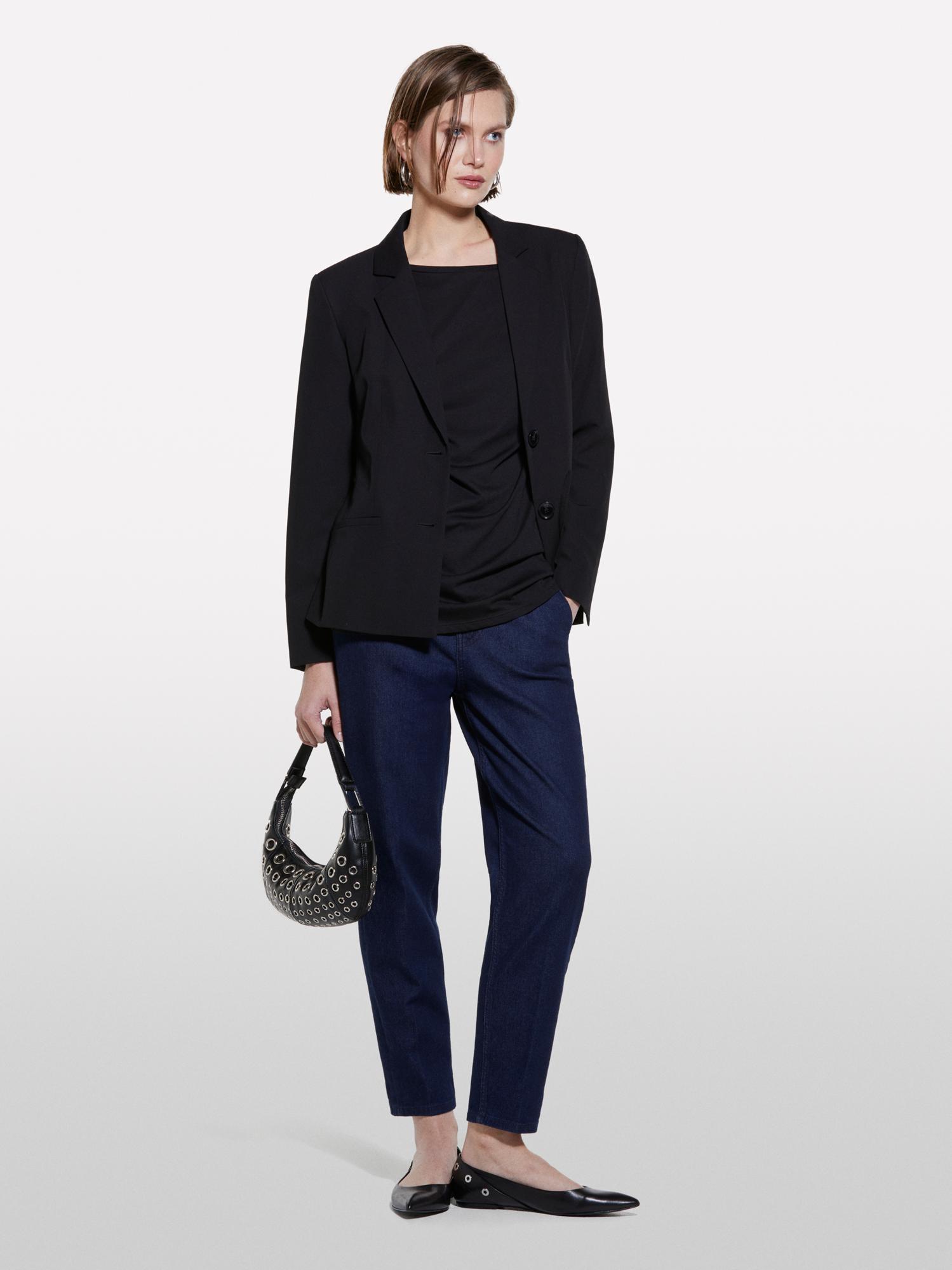 Kadın Siyah Modal Karışımlı Kayık Yaka Regular Fit T-Shirt