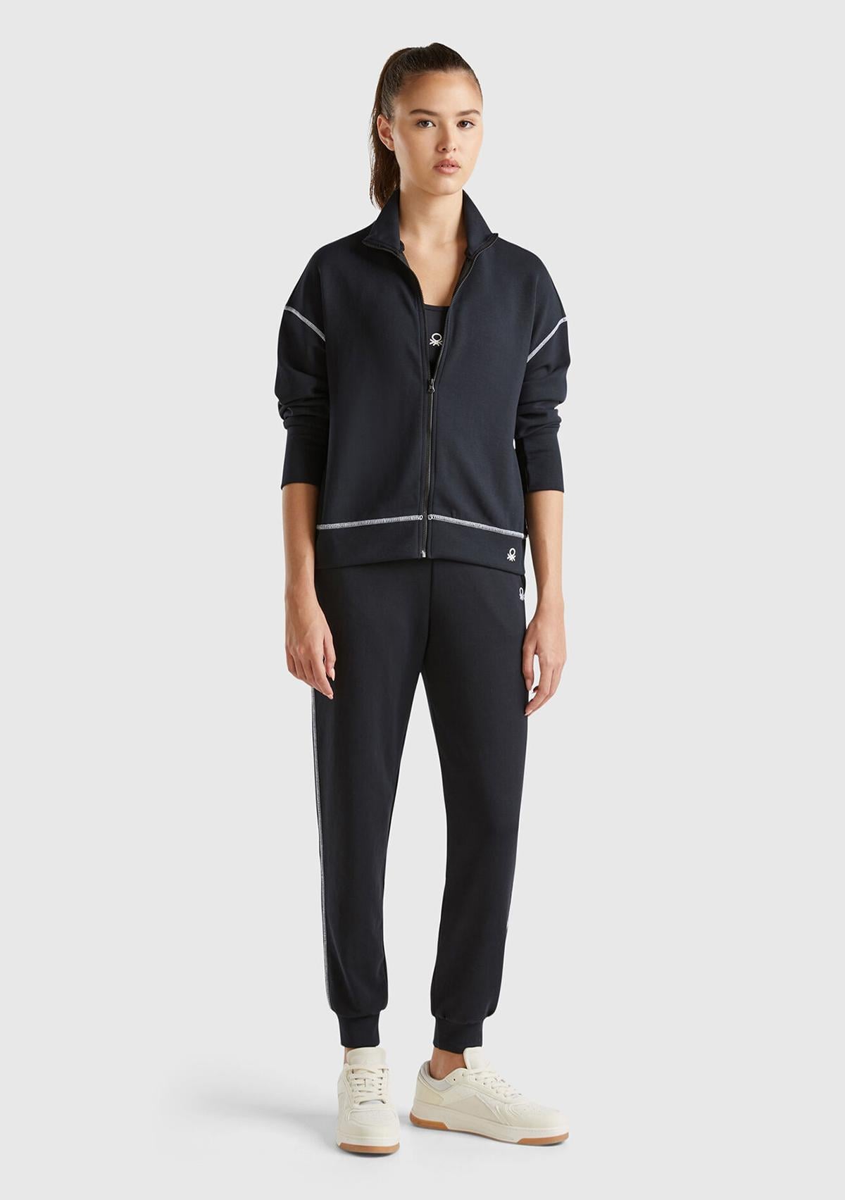 Kadın Siyah Modal Karışımlı Önü Fermuarlı Yüksek Yaka Sweatshirt