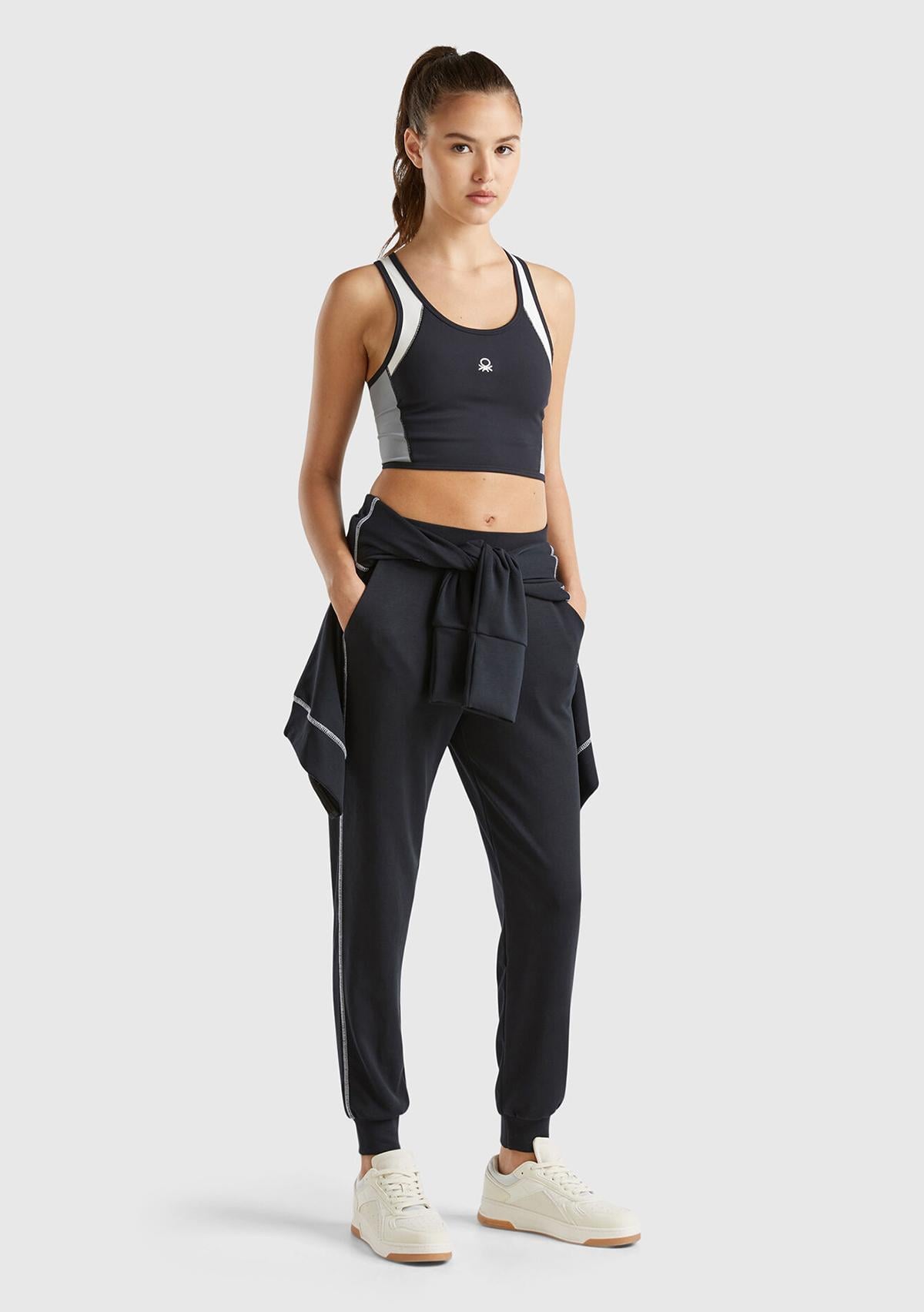 Kadın Siyah Modal Karışımlı Önü Logo Detaylı Bilek Manşetli Eşofman Altı