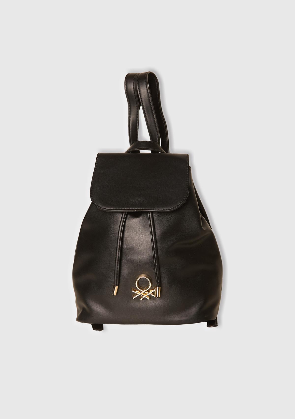 Kadın Siyah Napa Efektli 3D Logolu Büzme İpli Sırt Çantası