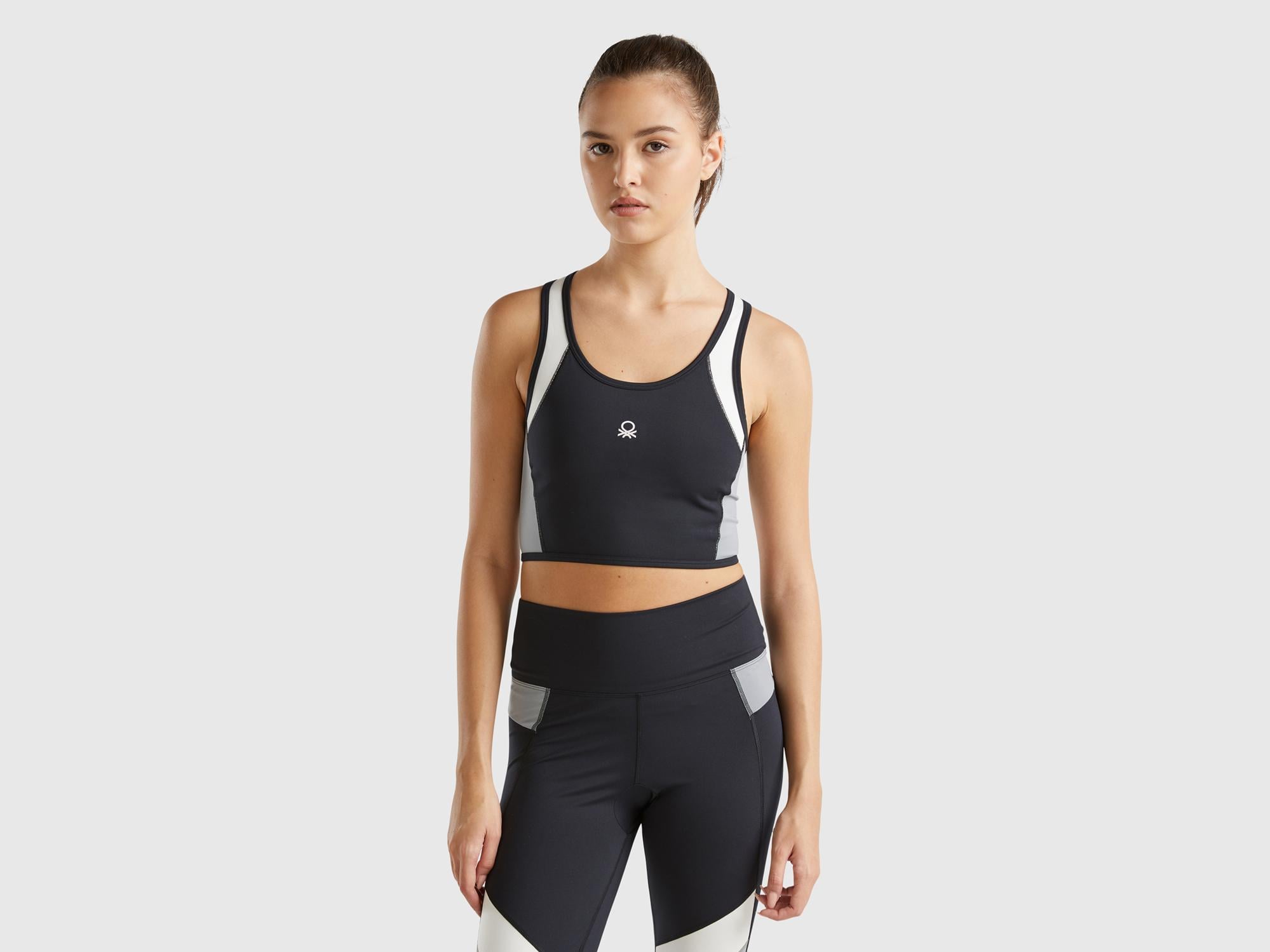 Kadın Siyah Önü Logo Baskılı Kontrast Renk Detaylı Crop Atlet