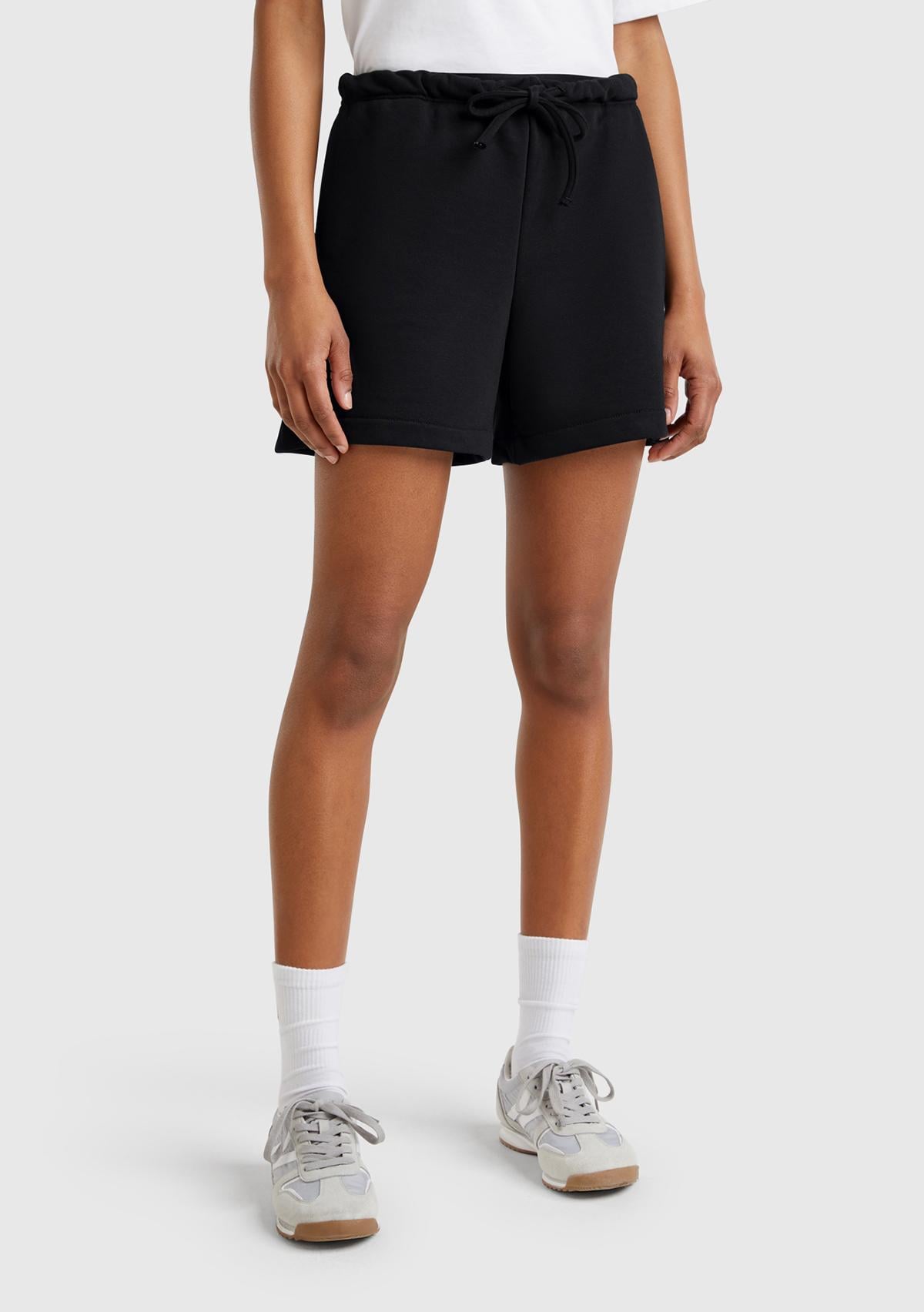 Kadın Siyah Pamuk Karışımlı Logo Bantlı İpli Yüksek Bel Bermuda Şort