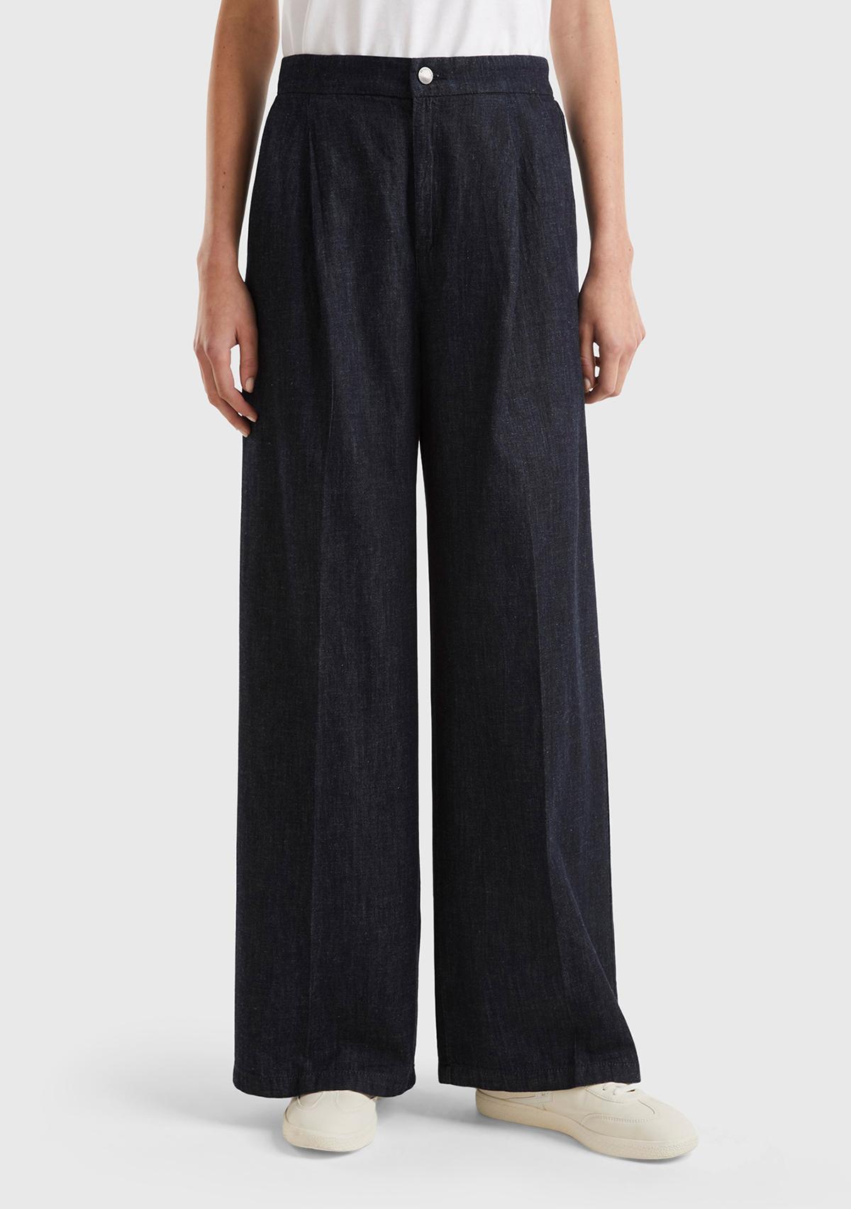 Kadın Siyah Pamuk Karışımlı Önü Pileli Beli Büzgülü Fermuarlı Pantolon