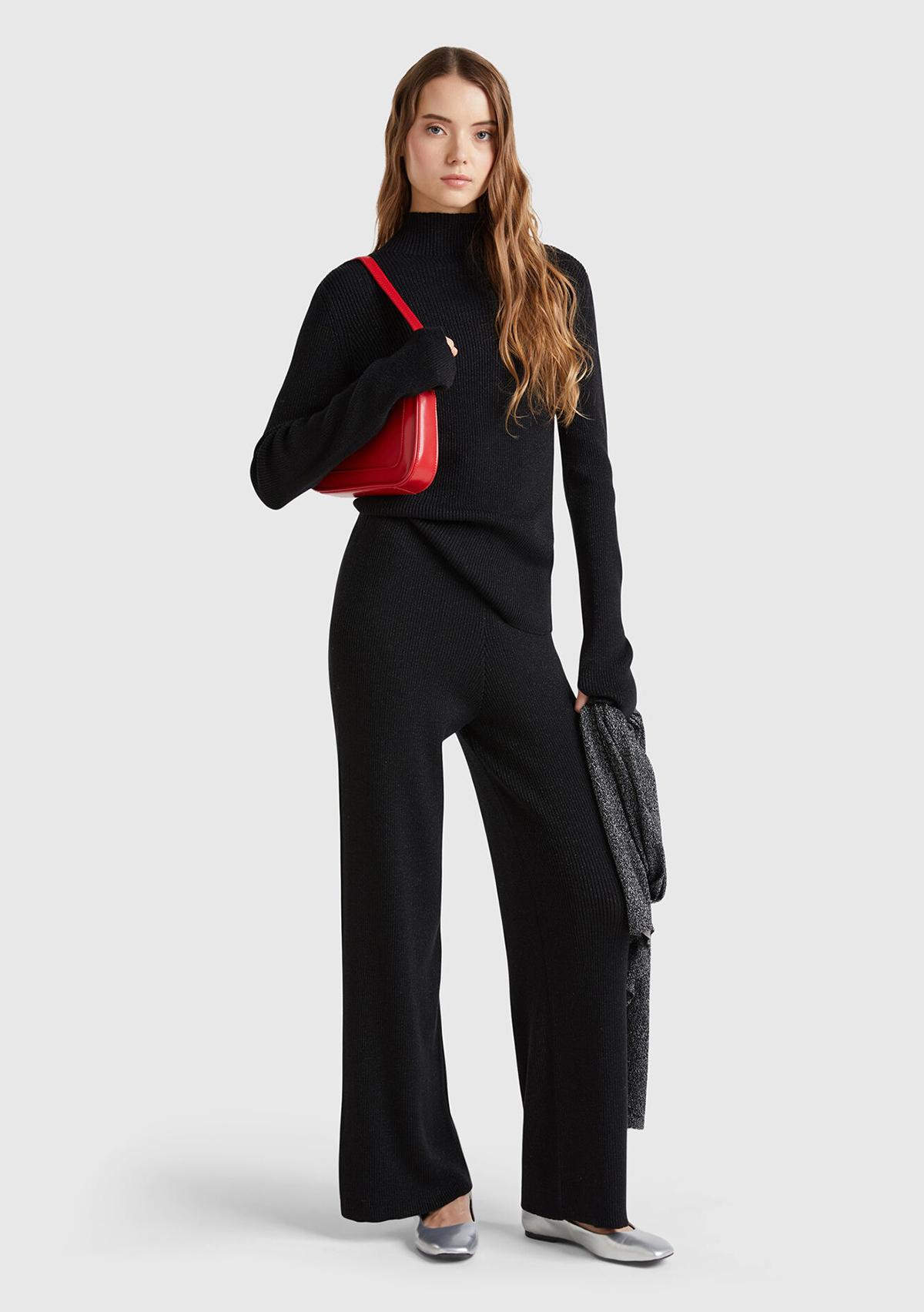 Kadın Siyah Pamuk ve Viskoz Karışımlı Simli Palazzo Pantolon