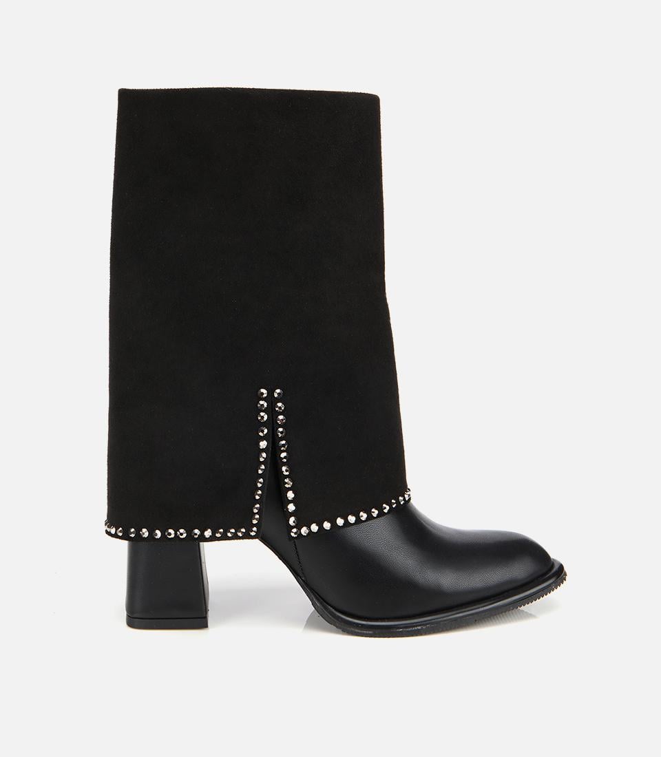 Kadın Siyah Pantolon Görünümlü Zımbalı Kalın Topuklu Bot