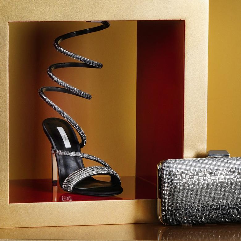 Kadın Siyah Parlak Taş Detaylı Abiye Topuklu Ayakkabı