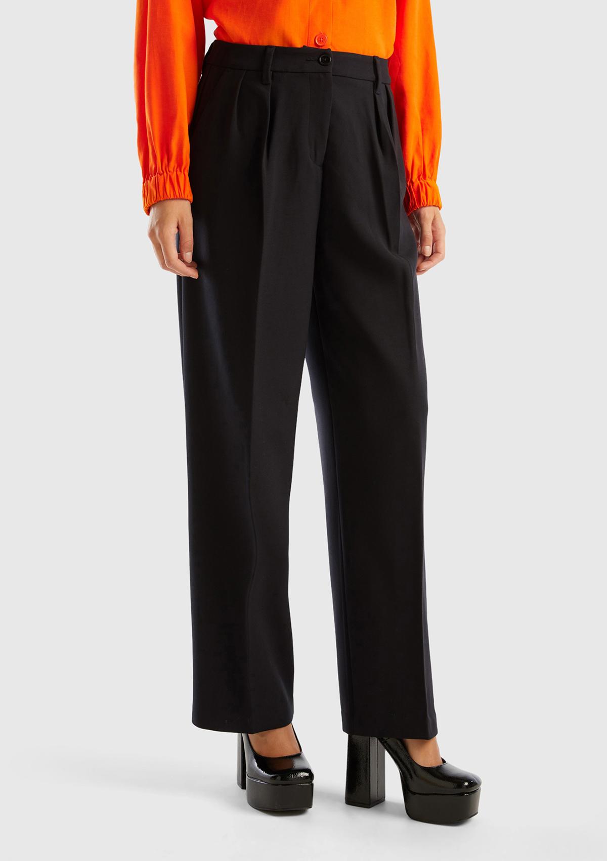 Kadın Siyah Poliviskoz Bol Paça Pileli Pantolon