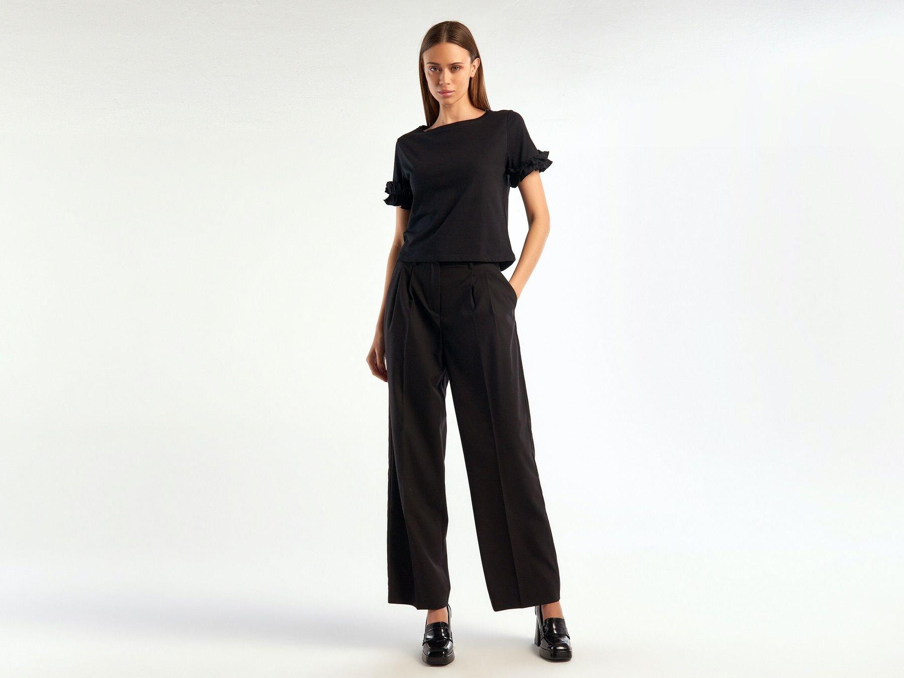 Kadın Siyah Poliviskoz Geniş Paça Pantolon