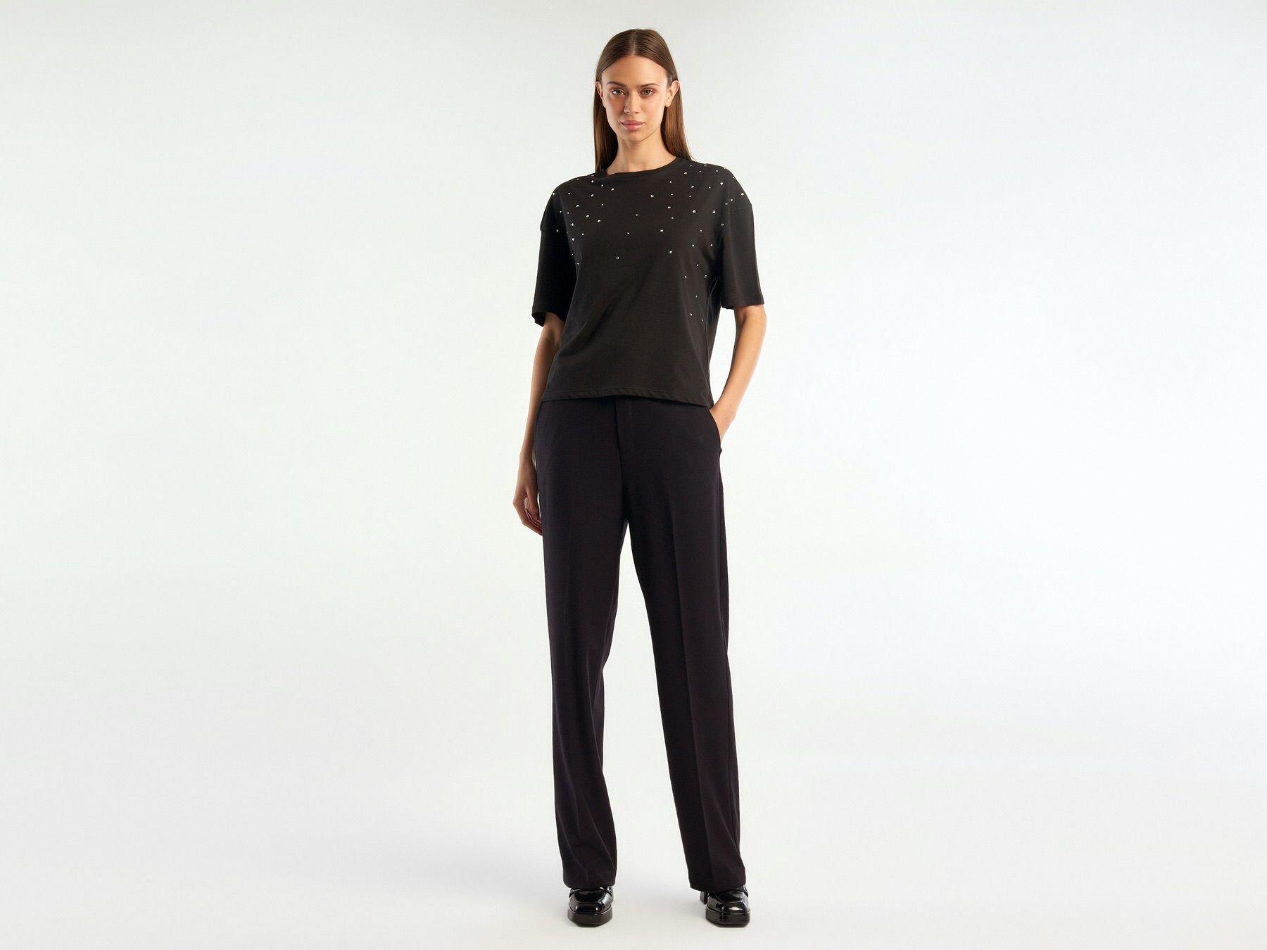 Kadın Siyah Poliviskoz Yumuşak Dokulu Regular Fit Pantolon