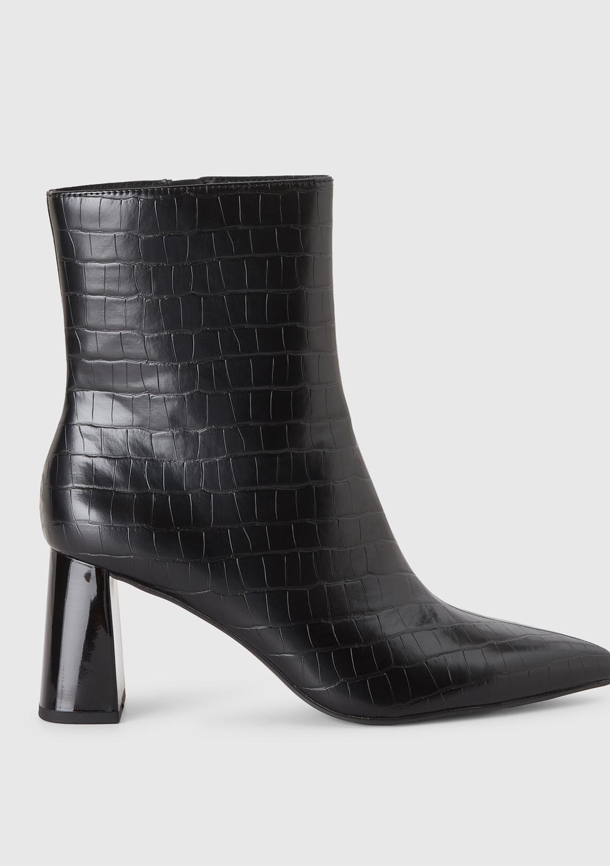 Kadın Siyah Sentetik Sivri Burun Topuklu Kroko Bot