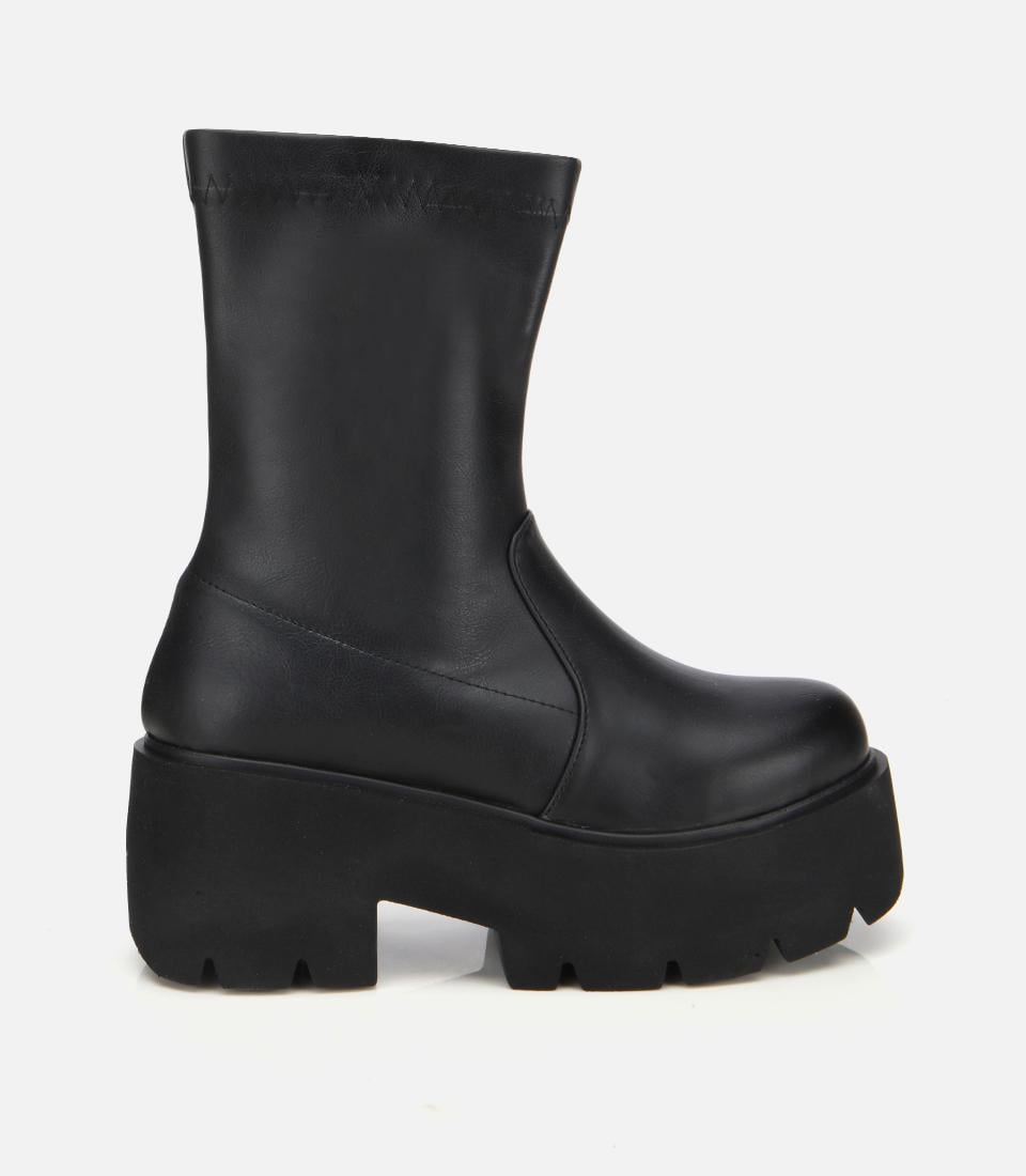 Kadın Siyah Streç Kalın Tabanlı Yüksek Topuklu Bot