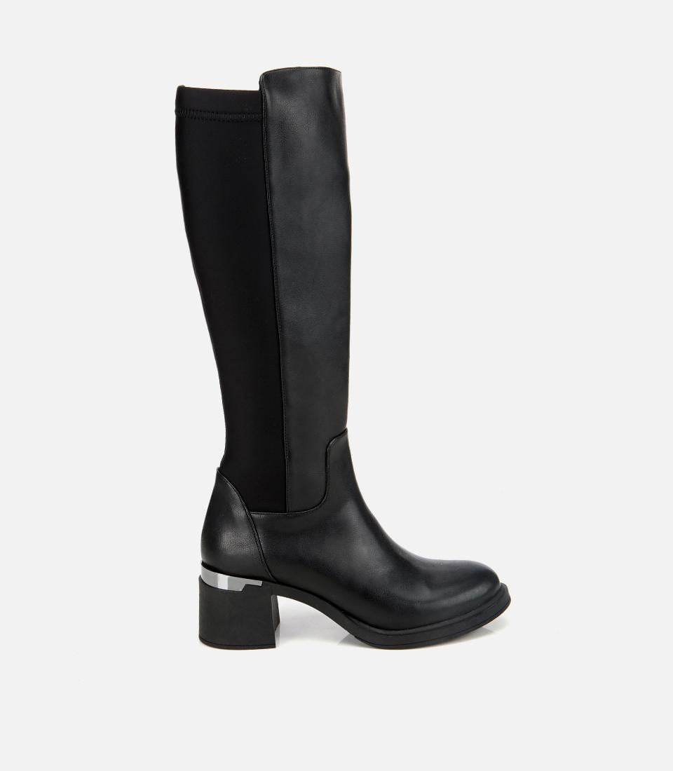 Kadın Siyah Streç Metal Detaylı Topuklu Çizme