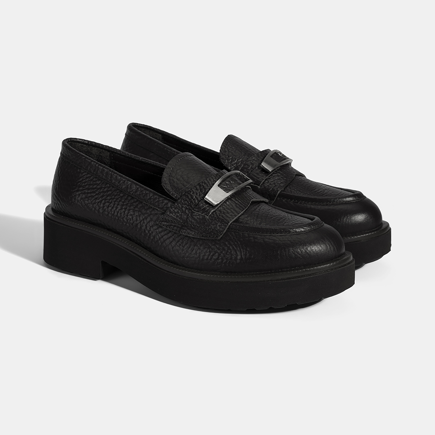 Kadın Siyah Toka Aksesuarlı Kalın Tabanlı Deri Loafer