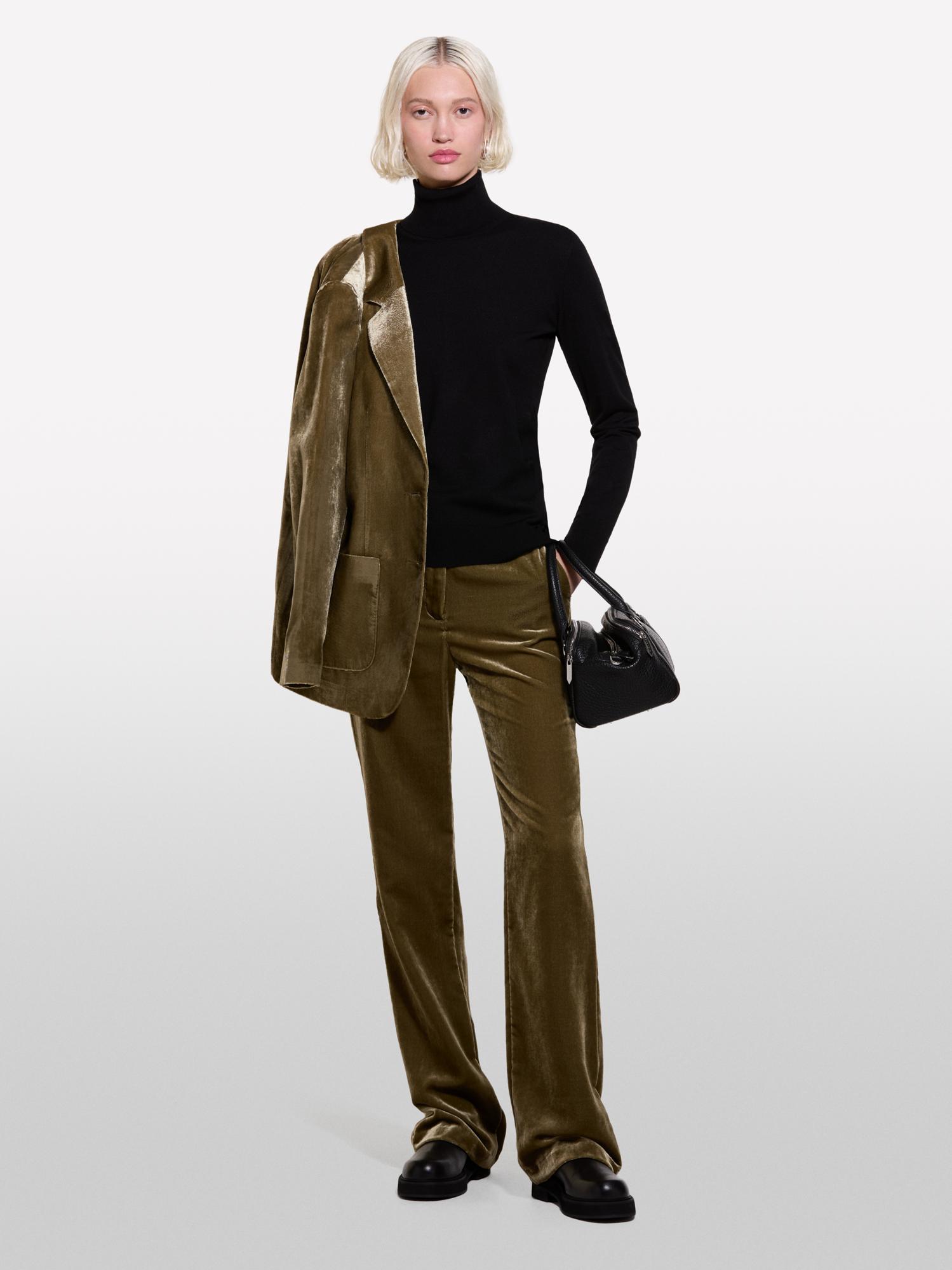 Kadın Siyah Viskoz Karışımlı Balıkçı Yaka Düz Kazak