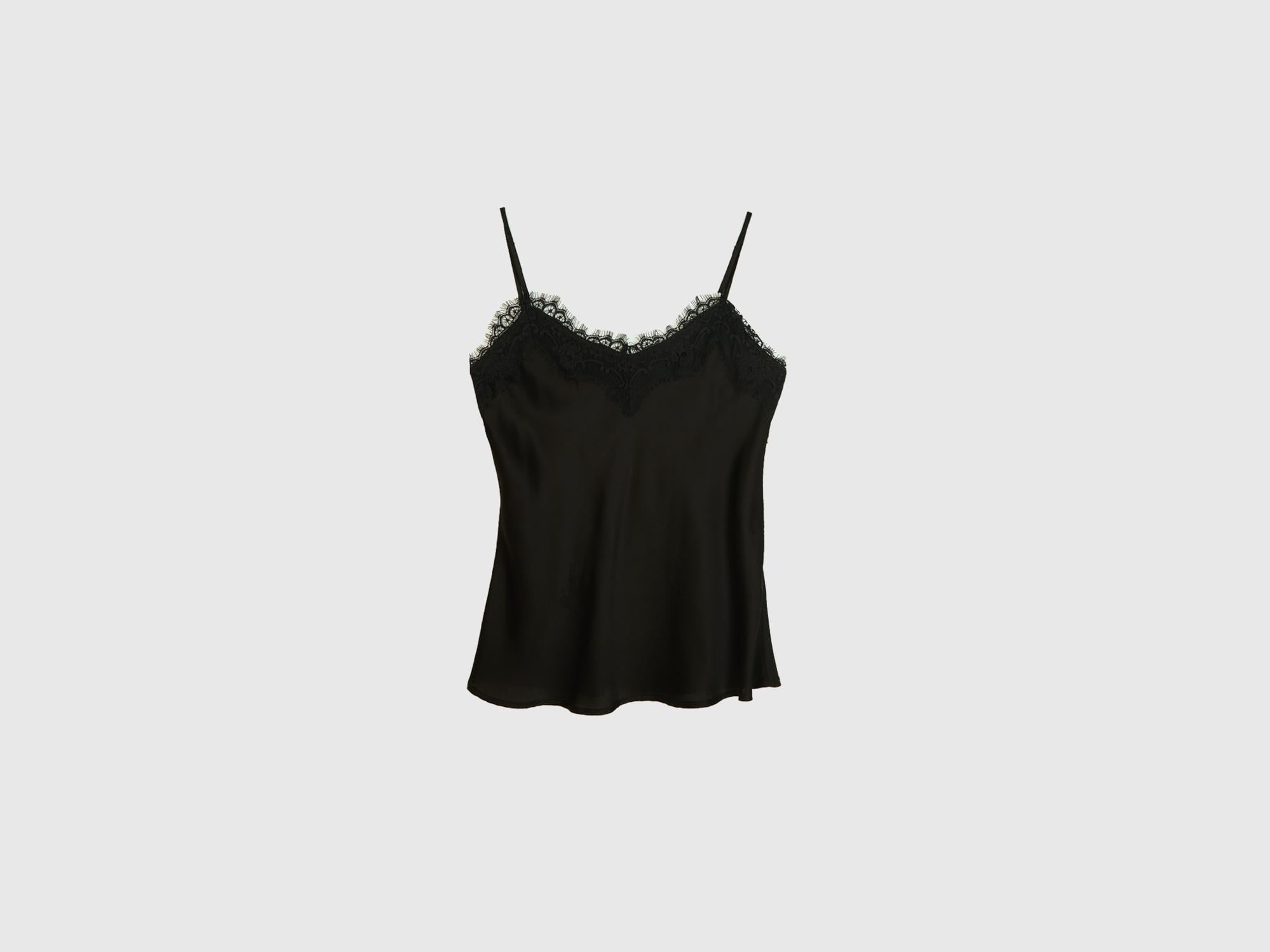 Kadın Siyah Viskoz ve Liyosel Karışımlı Yakası Dantel Detaylı Askılı Bluz
