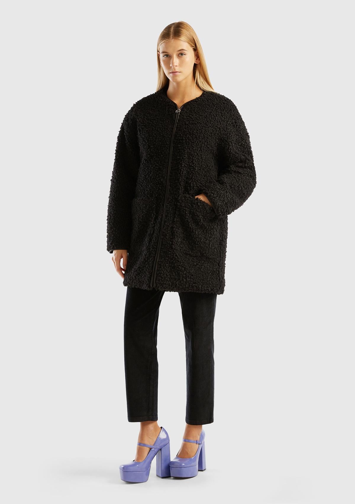 Kadın Siyah Yakasız İnce Mont