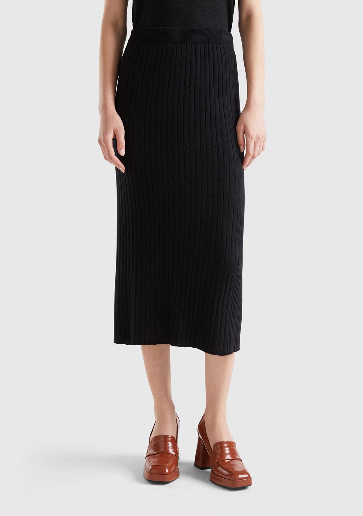 Kadın Siyah Yün Karışımlı Uzun Etek