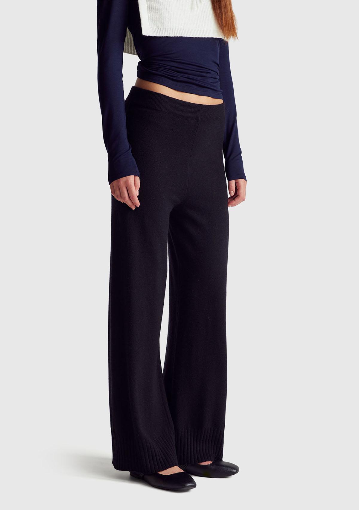 Kadın Sİyah Yün ve Kaşmir Karışımlı Ribana Detaylı Triko Pantolon