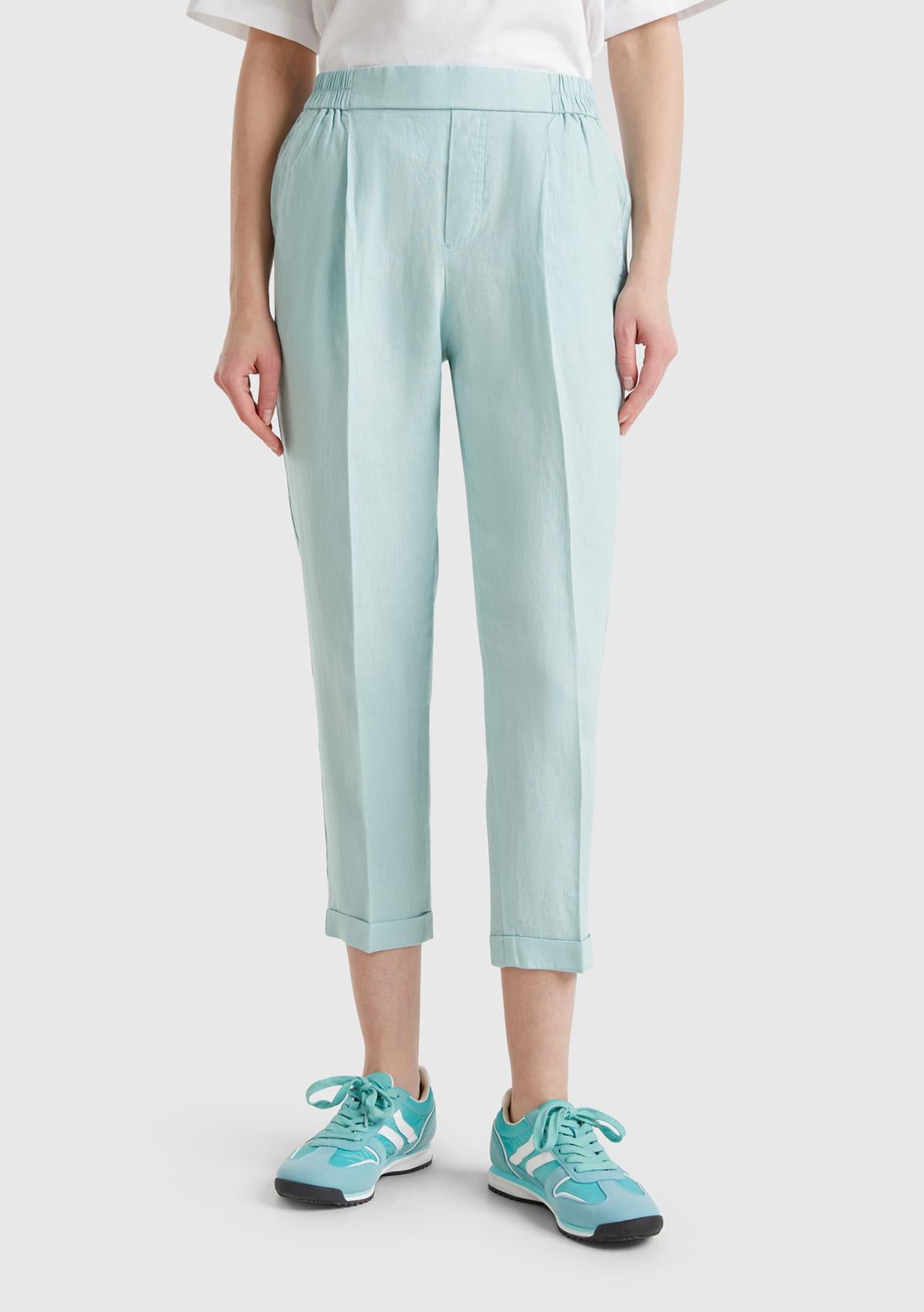 Kadın Su Yeşili %100 Keten Beli Lastikli Pantolon