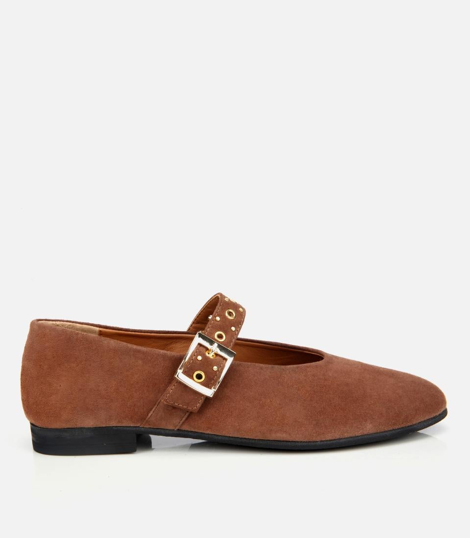 Kadın Süet Deri Açık Kahverengi Mary Jane Kemerli Babet