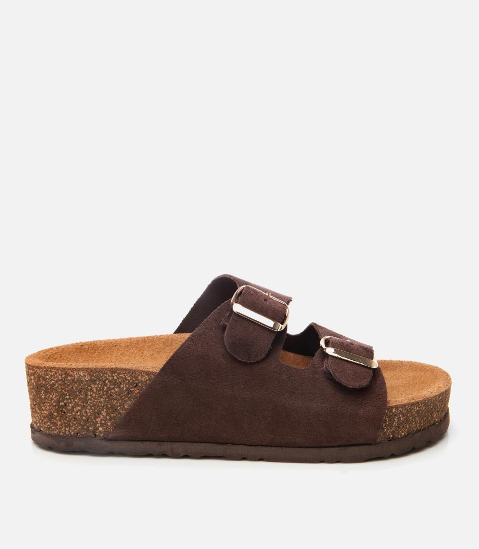Kadın Süet Deri Kahverengi Ayarlanabilir Düz Terlik