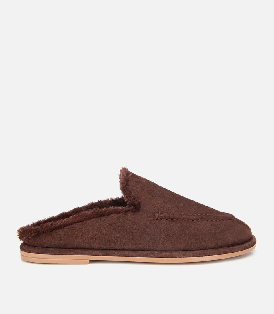 Kadın Süet Deri Kahverengi İçi Kürklü Düz Günlük Terlik