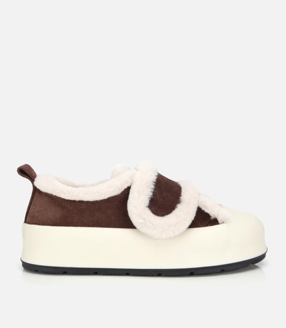 Kadın Süet Deri Kahverengi Kürklü Kalın Bantlı Spor Ayakkabı