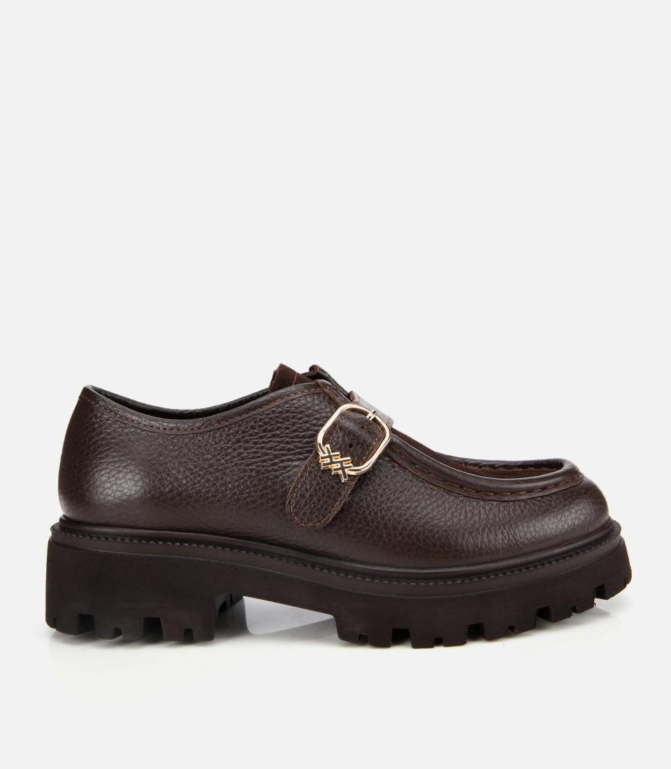 Kadın Süet Deri Kahverengi Toka Detaylı Yüksek Tabanlı Günlük Loafer