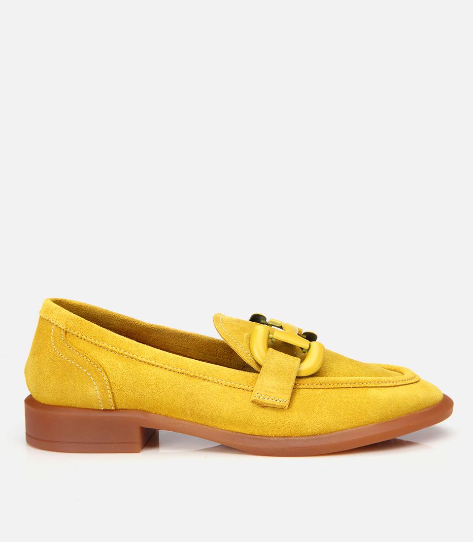 Kadın Süet Deri Sarı Esnek Tabanlı Günlük Loafer
