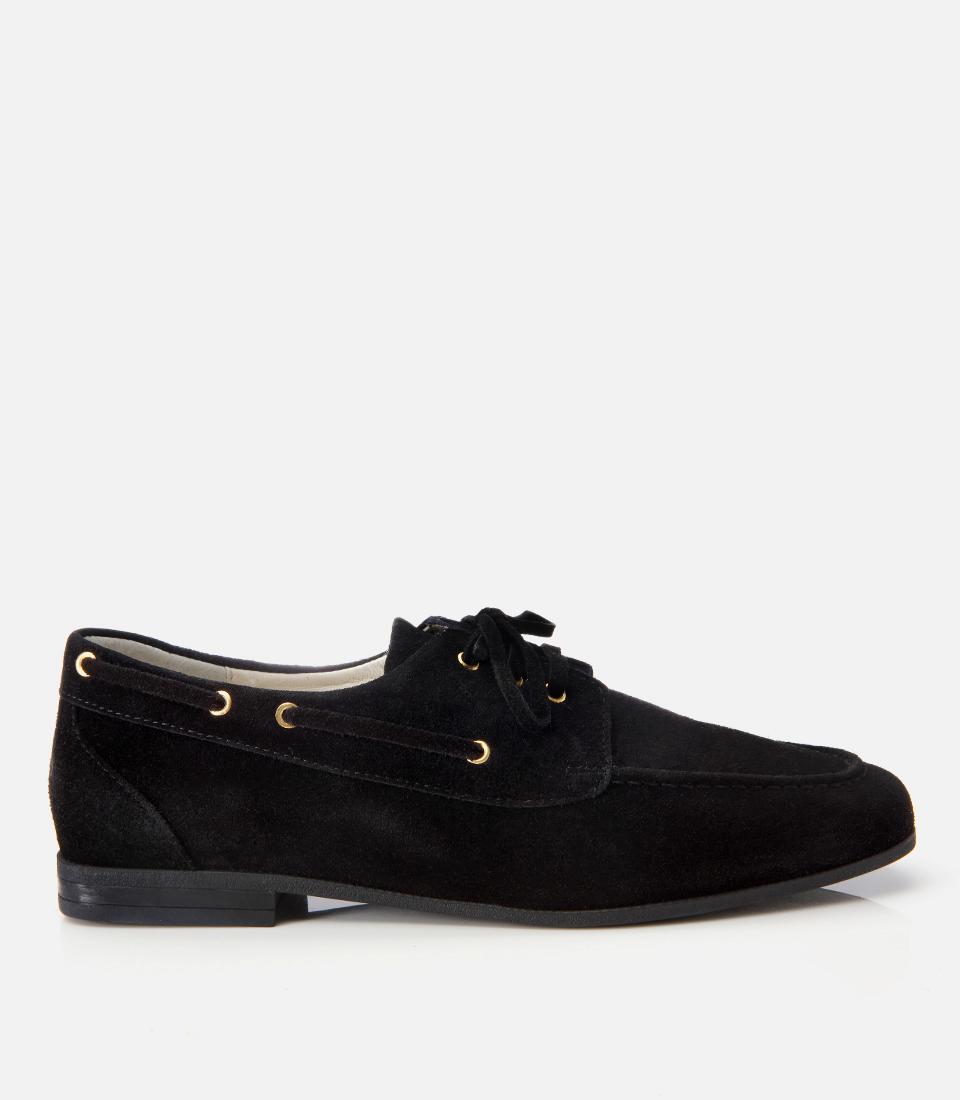 Kadın Süet Deri Siyah Bağcık Detaylı Günlük Loafer