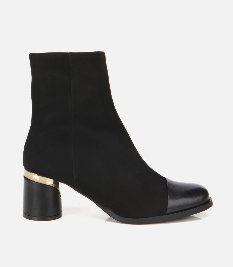 Kadın Süet Deri Siyah Gold Detaylı Bilekte Topuklu Bot