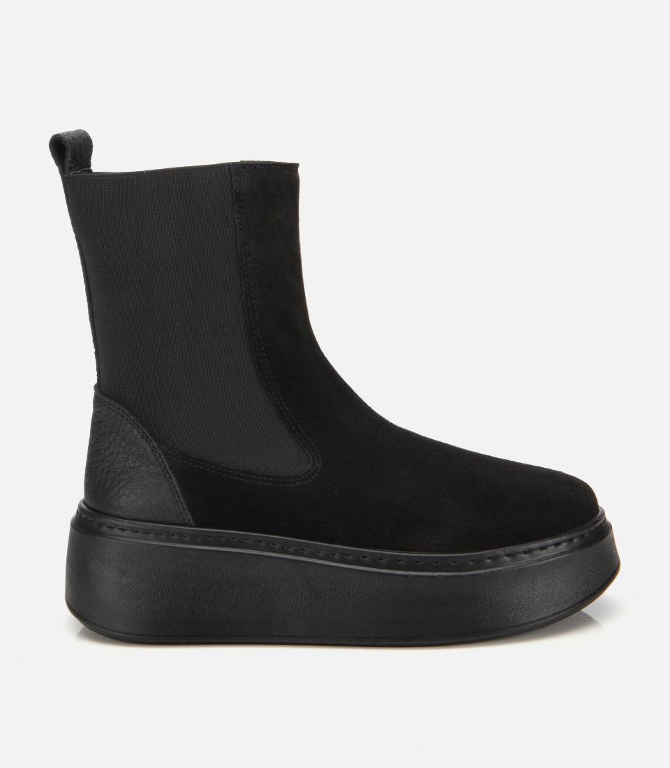 Kadın Süet Deri Siyah Lastik Detaylı Kalın Tabanlı Düz Bot