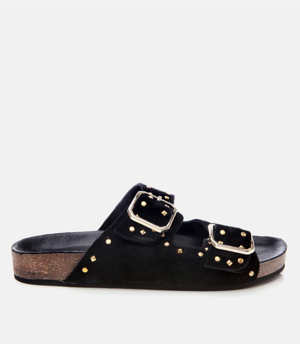 Kadın Süet Deri Siyah Taşlı Terlik