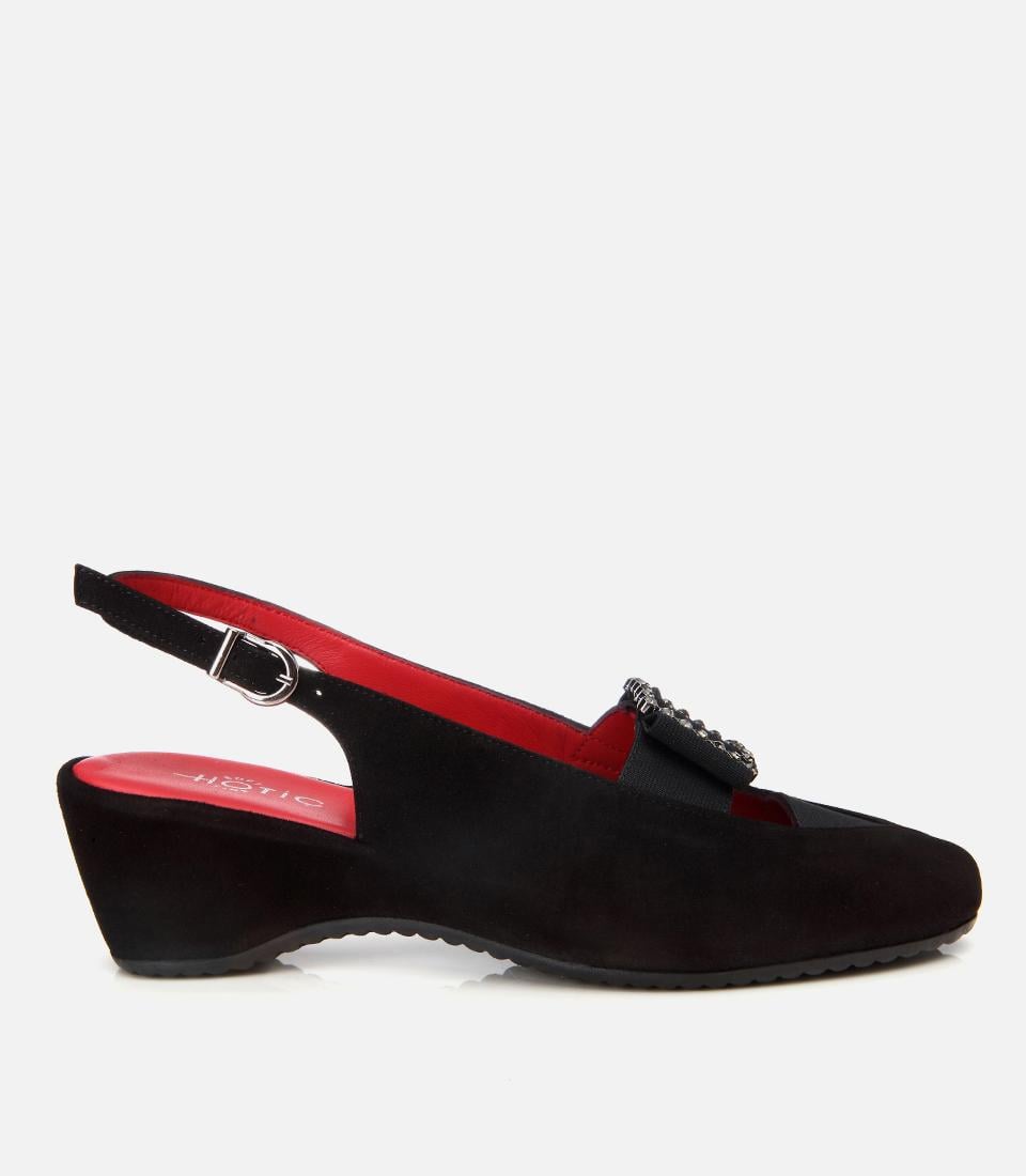Kadın Süet Deri Siyah Tokalı Esnek Dolgu Topuklu Sandalet