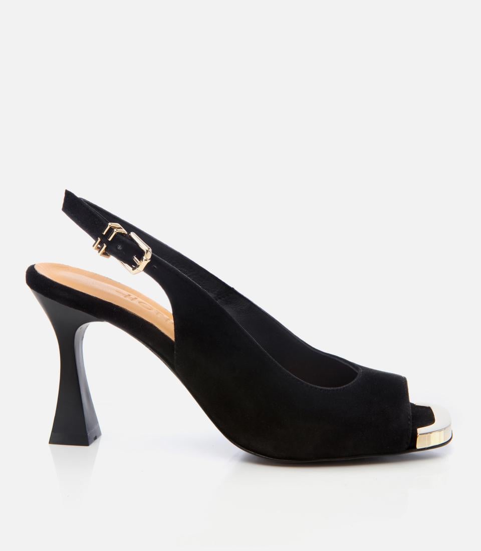 Kadın Süet Deri Siyah Topuklu Sandalet