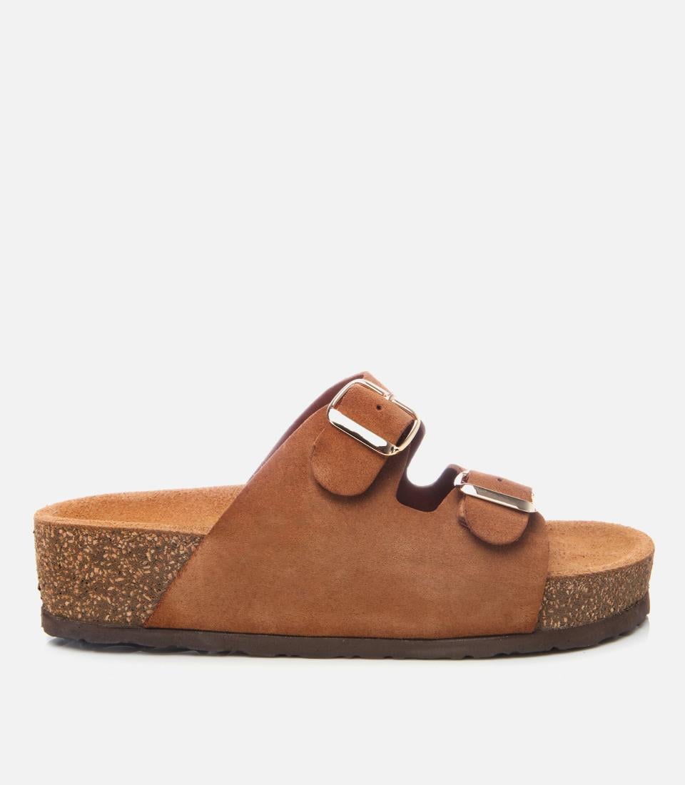 Kadın Süet Deri Taba Ayarlanabilir Düz Terlik