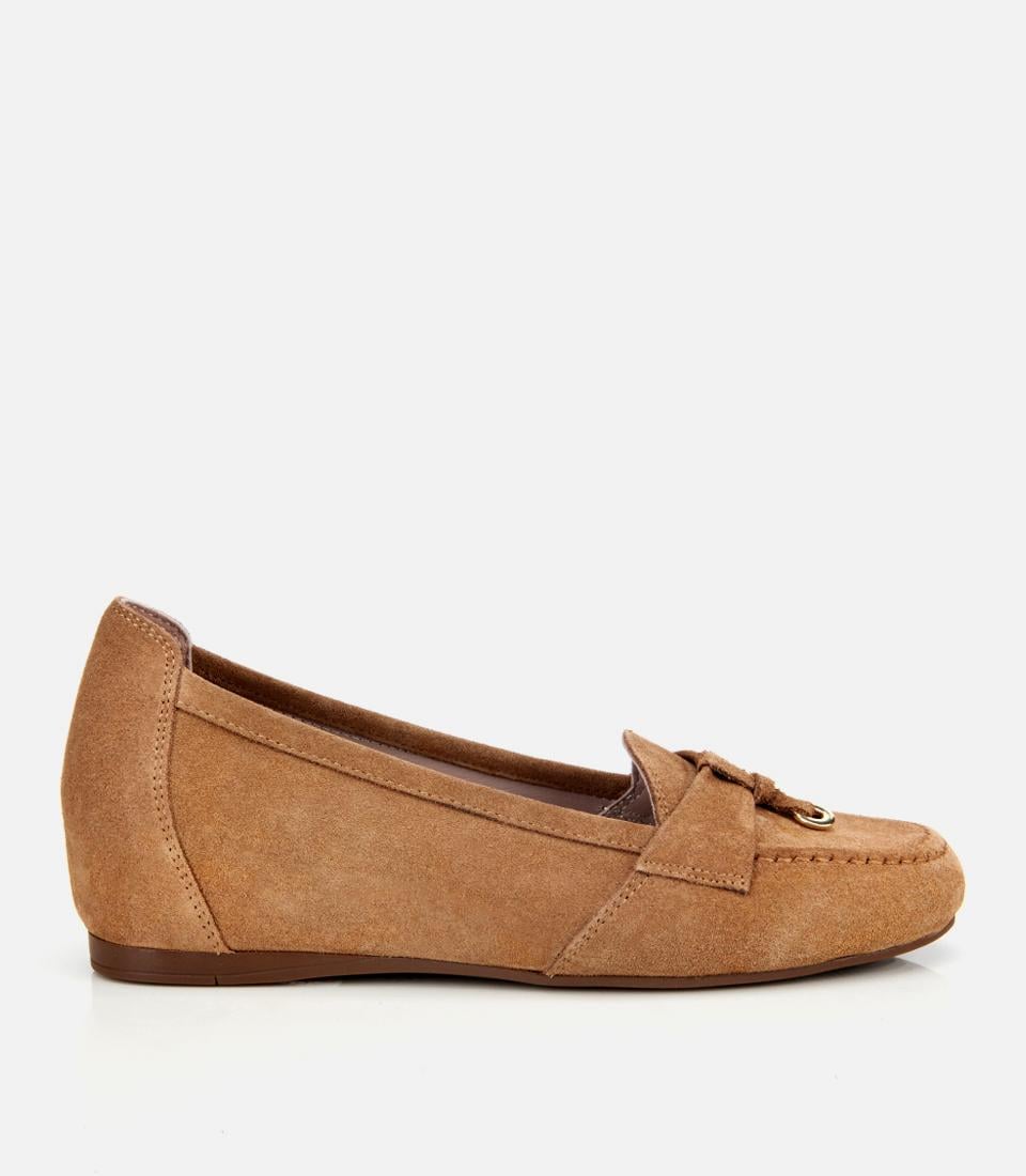 Kadın Süet Deri Taba Dolgu Topuklu Rahat Günlük Loafer