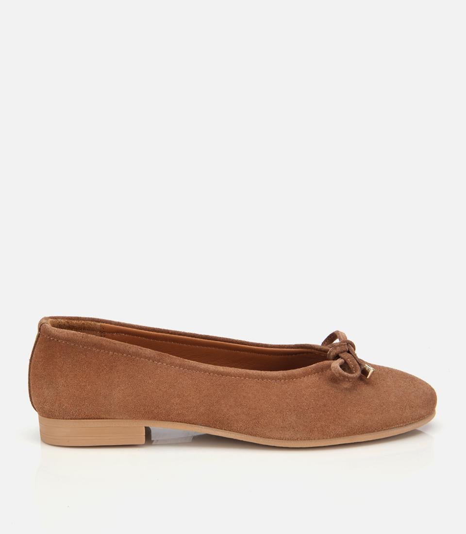 Kadın Süet Deri Taba Fiyonk Detaylı Babet