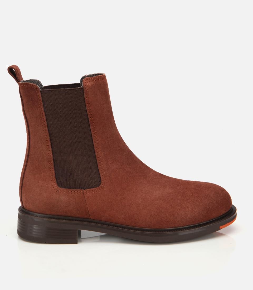 Kadın Süet Deri Taba Lastik Detaylı Düz Bot
