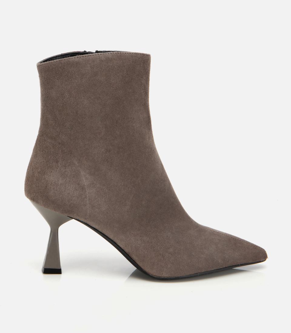 Kadın Süet Deri Vizon Dikiş Detaylı Sivri Kısa Topuklu Bot