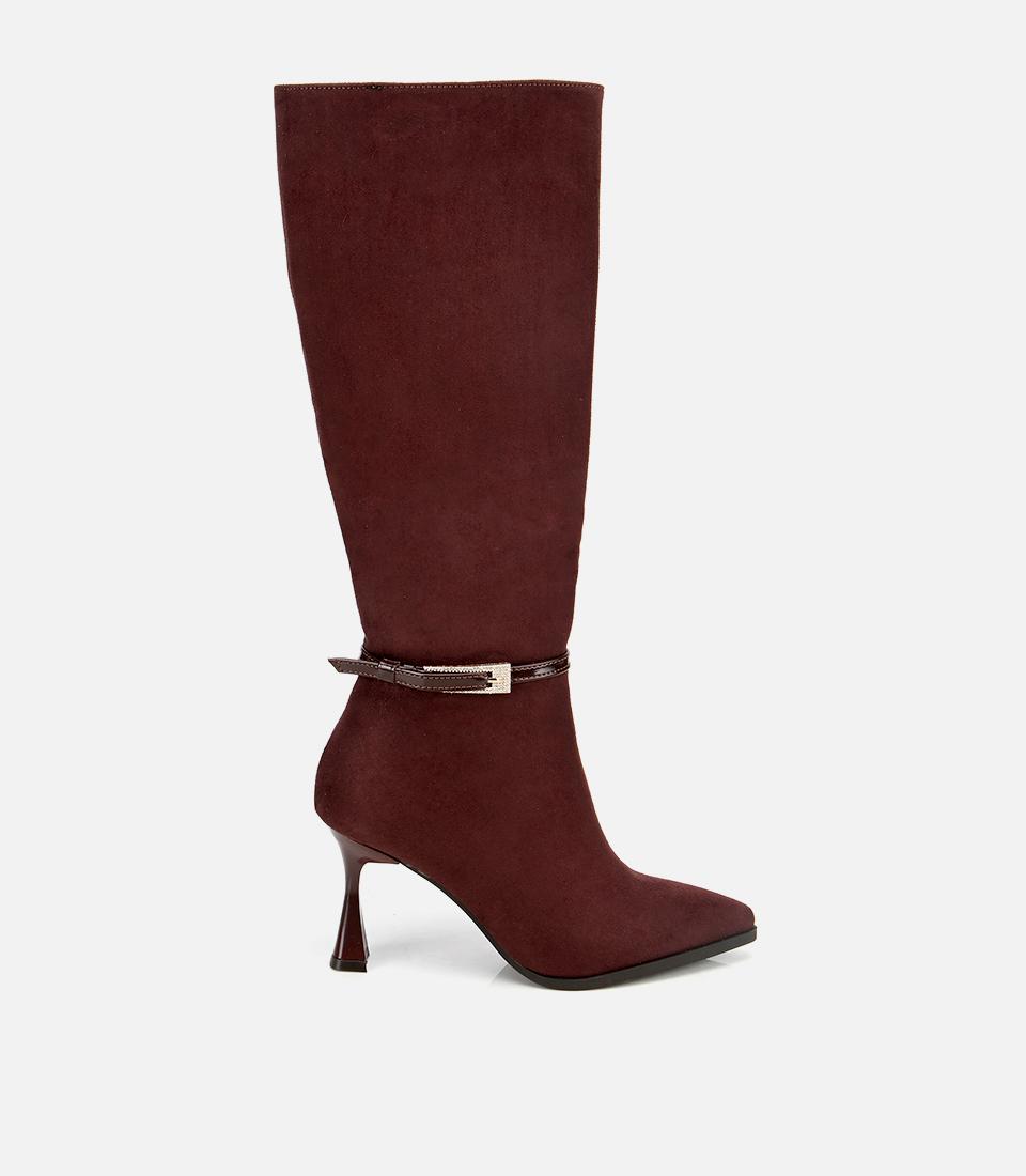 Kadın Süet Kahverengi Tokalı İnce Topuklu Bot
