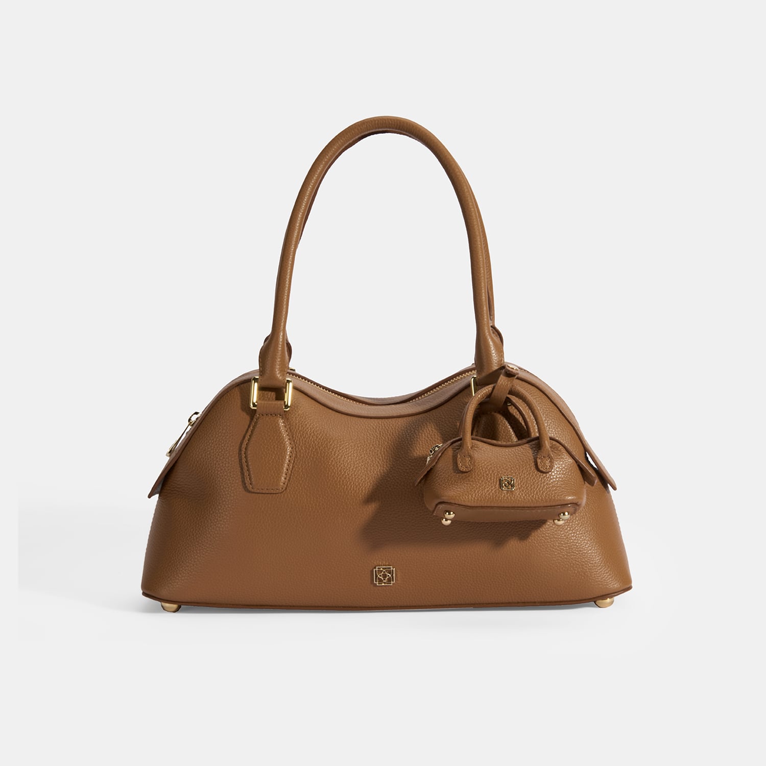 Kadın Taba Deri Çanta Aksesuarlı Büyük Omuz Çantası