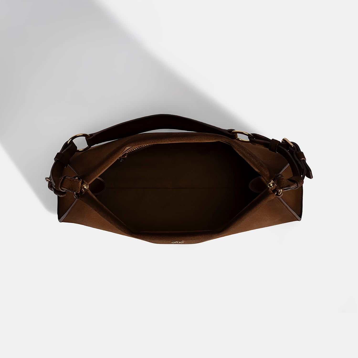 Sapın iki yanında konumlanan ayarlama sapları ve sapın orta kısmında bulunan biye dekorlu deri ayarlama sapları, altın renkli metal halkalarla bağlanarak estetik bir görünüm kazandırır.