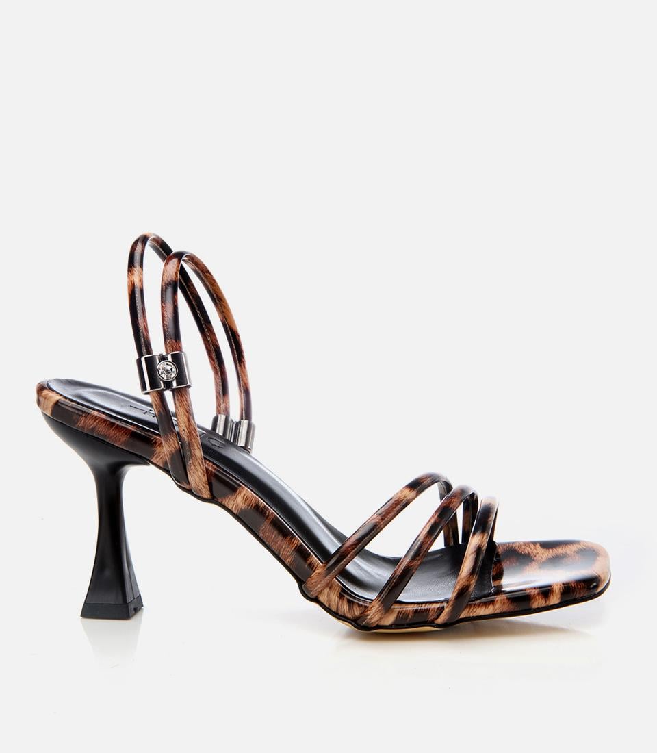 Kadın Taba Leopar Desenli Topuklu Sandalet