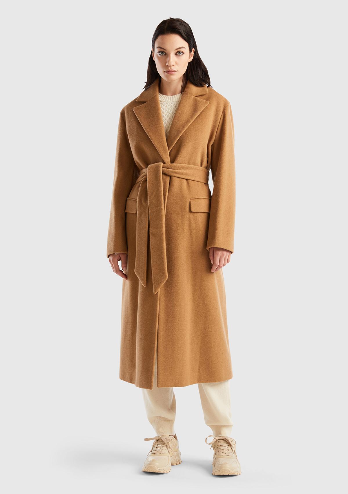 Kadın Taba Yün Karışımlı Belden Bağlamalı Palto